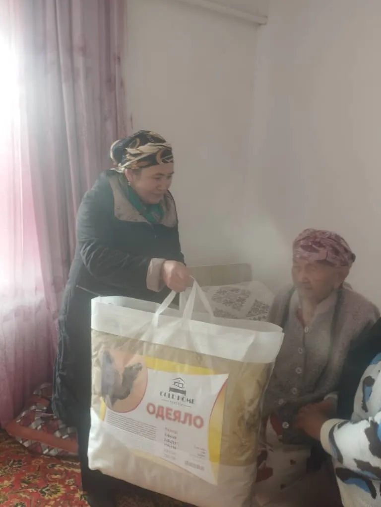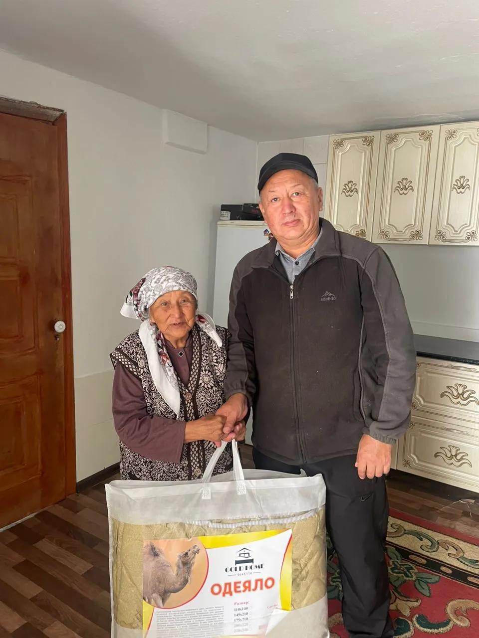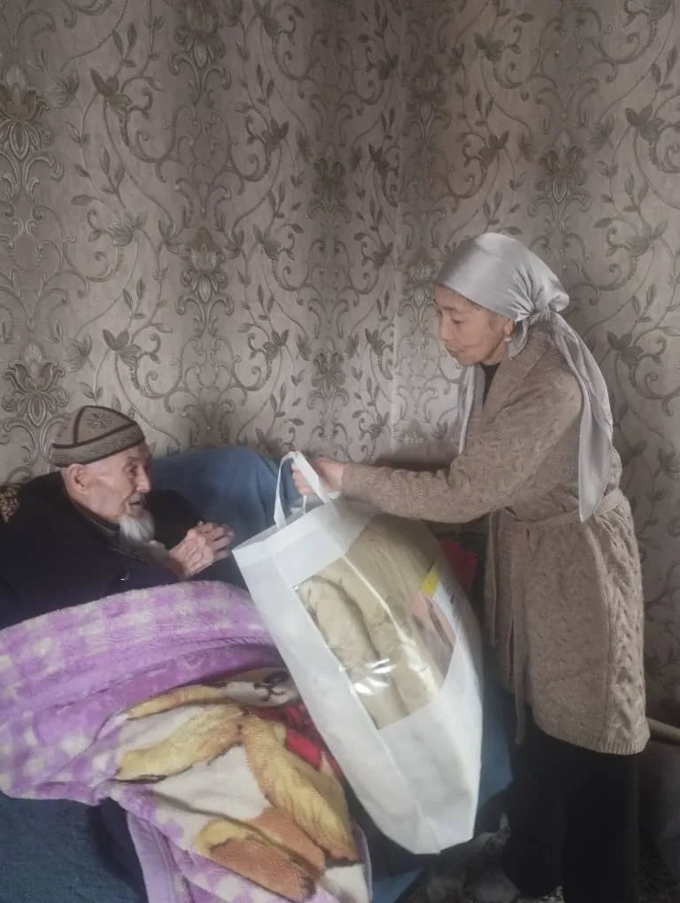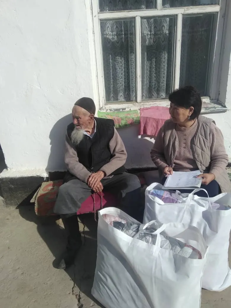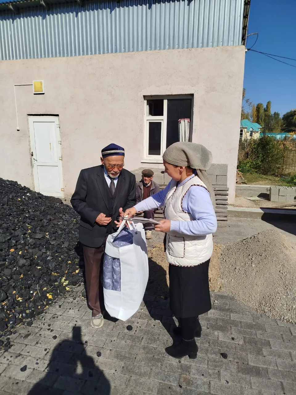 Аманбаев айыл өкмөтү 80 жаштан ашкан улгайган адамдарга өзгөчө урмат сый көрсөтүп, жылуу сөздөрун арнап, ден соолук тилеп, ата апаларыбызга белектерин берип келишти.